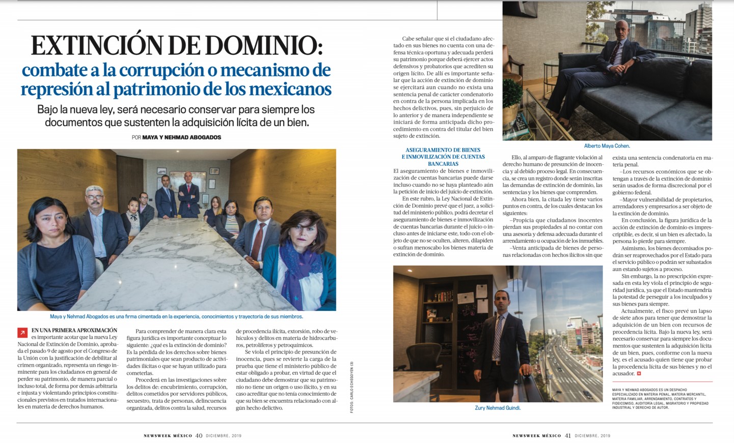“Commitment to Justice” In this special edition of Abogados Magazine, the firm's founding partners, Zury Nehmad Guindi, Ms. and Alberto Maya Cohen, Ms., reflect on Maya y Nehmad Abogados' more than 20-year history, the evolution of criminal litigation in Mexico, and the current challenges facing the legal profession.